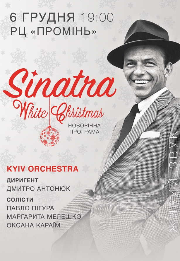 Sinatra. White Christmas состоится 6 декабря 2025, 19:00, суббота в Развлекательный центр «Промінь». С помощью сервиса internet-bilet.ua, Вы сможете с легкостью забронировать, заказать и купить билеты на интересующий Вас концерт, спектакль, оперу, балет, мастер-классы, спортивные и детские мероприятия, оплатив их самым удобным для Вас способом: через интернет банковской картой VISA/MasterCard, наличными или курьером, если сделаете заказ билета c доставкой.